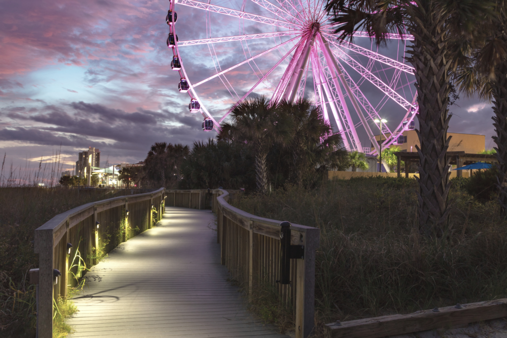 Welcome to Myrtle Beach, or as the locals like to say, The Beach. You will find over 60 miles of beautiful coastline and many unique communities. Even in winter, the sunshine on Myrtle Beach is warm and the weather is perfect for outdoor activities like checking out the Boardwalk, taking a ride on the SkyWheel or a beach bar formal at Tin Roof. Let’s start planning!